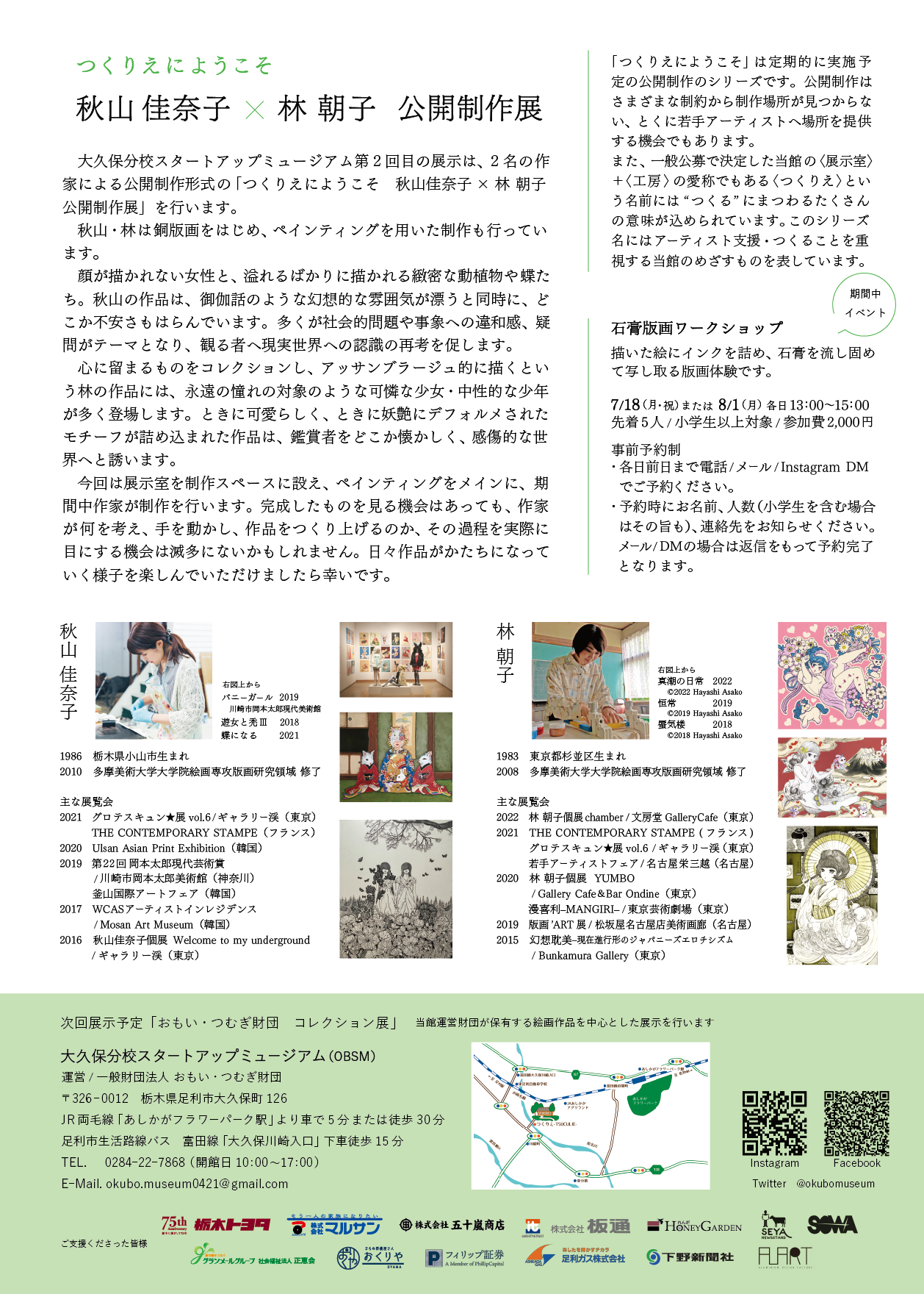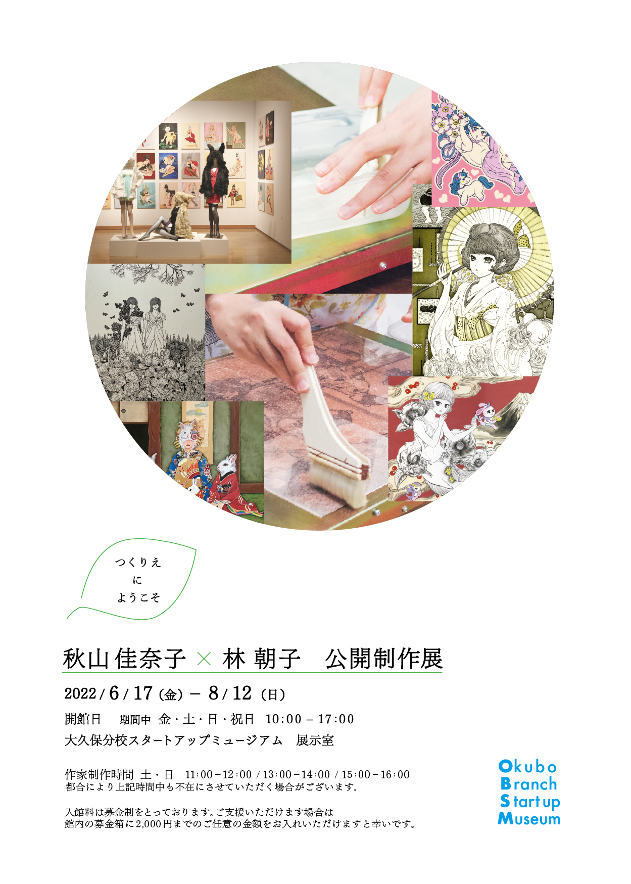 大久保分校スタートアップミュージアム第2回目の展示は、2名の作家による公開制作形式の「つくりえにようこそ 秋山佳奈子×林 朝子」を行います。