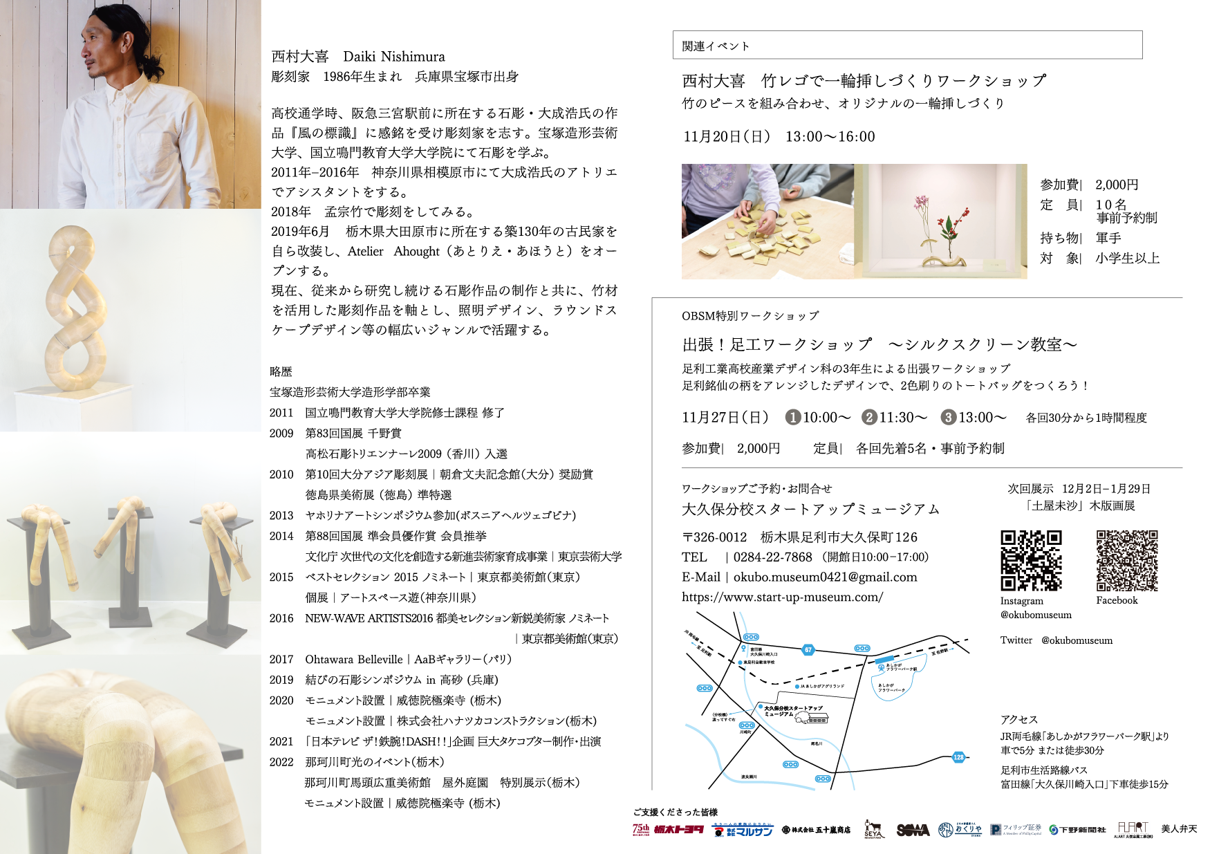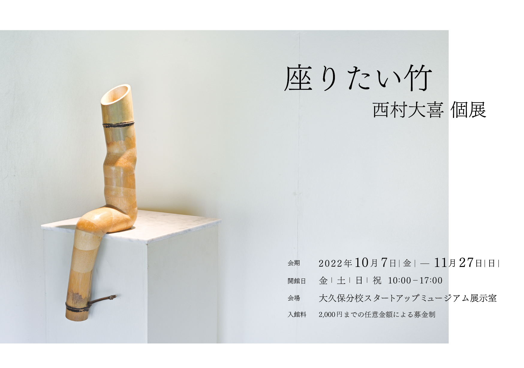 大久保分校スタートアップミュージアム第 4 回目の展示は「座りたい竹 西村大喜 展」を行います。