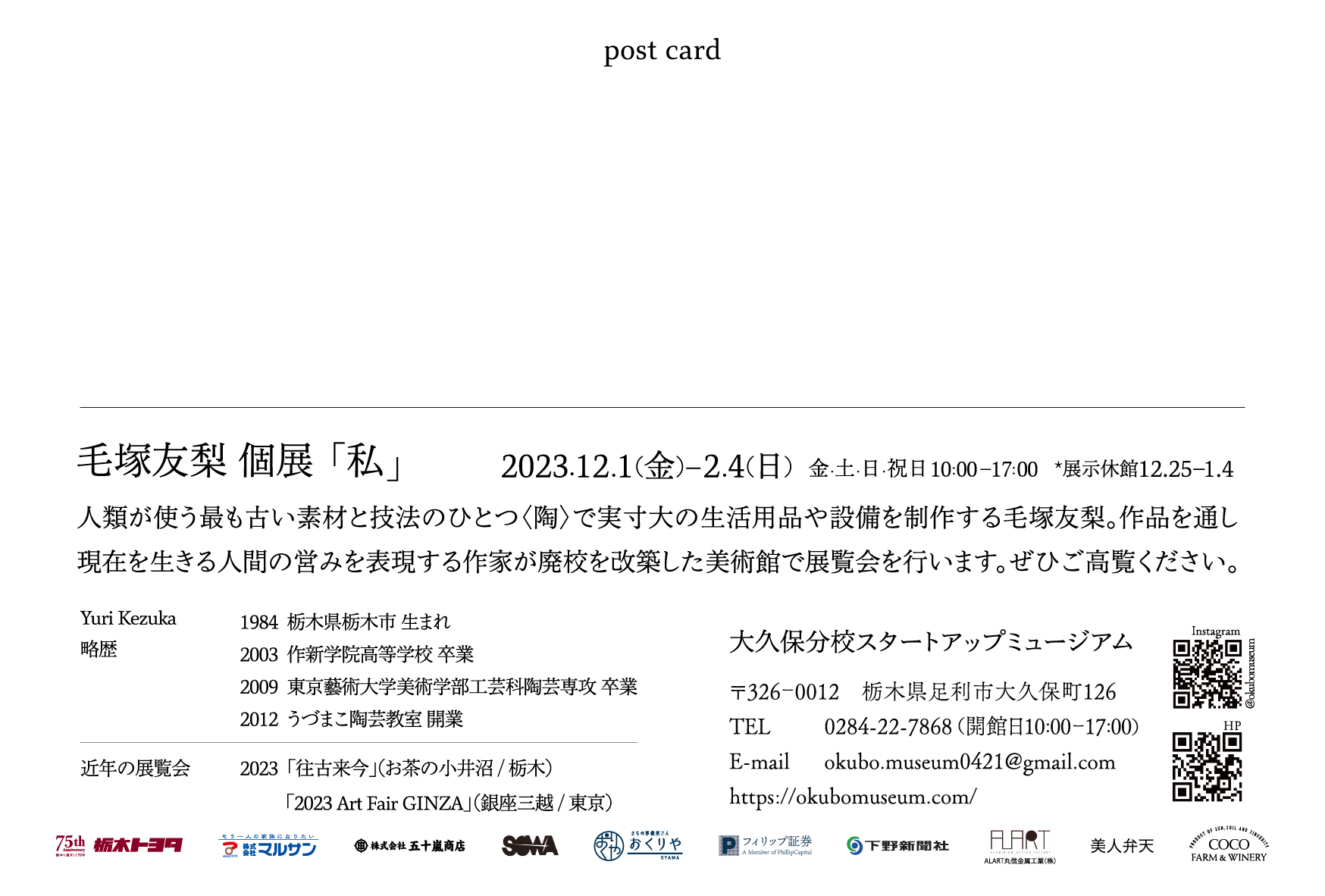 展示休館:2023.12.25〜2024.01.04