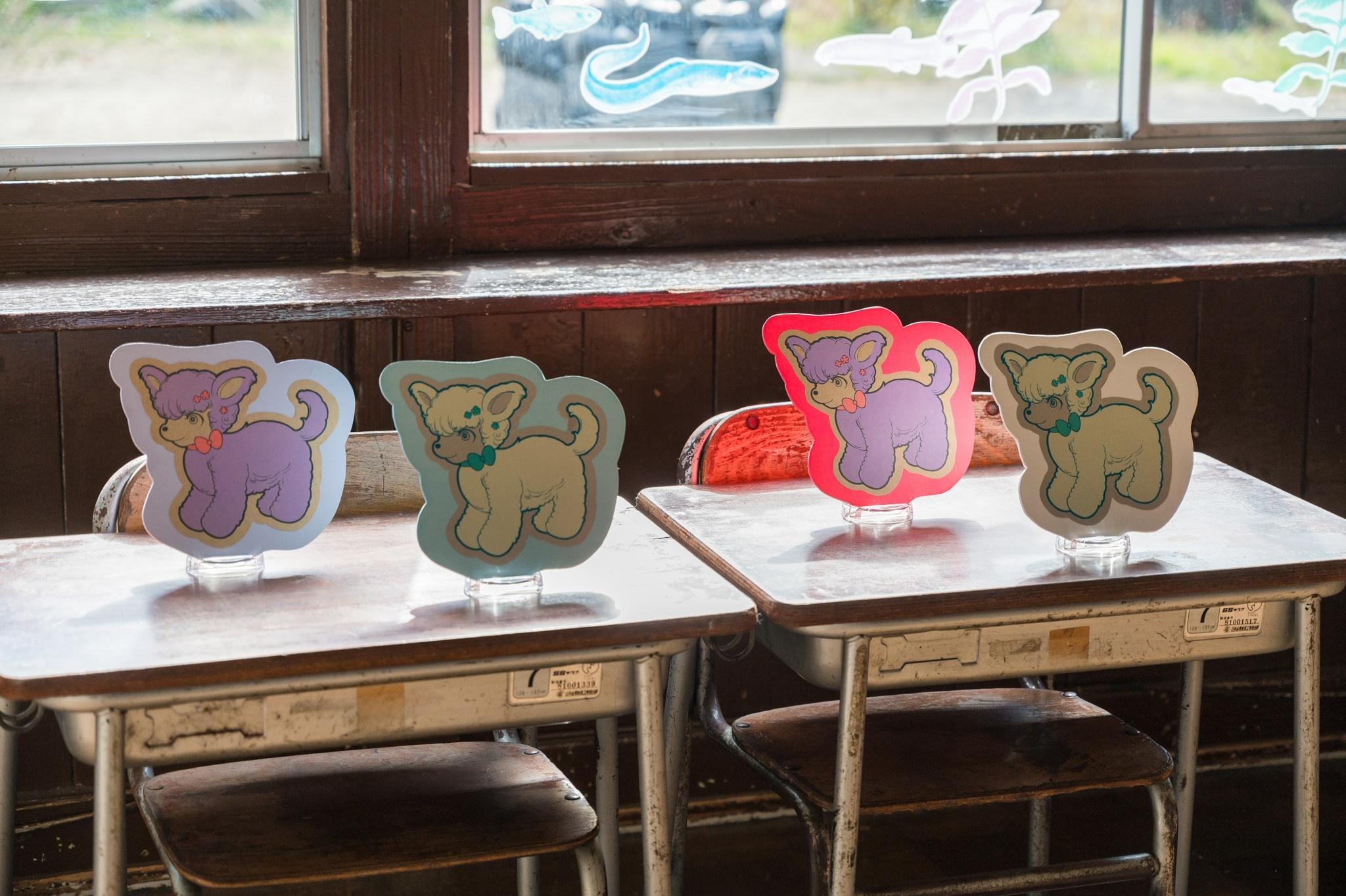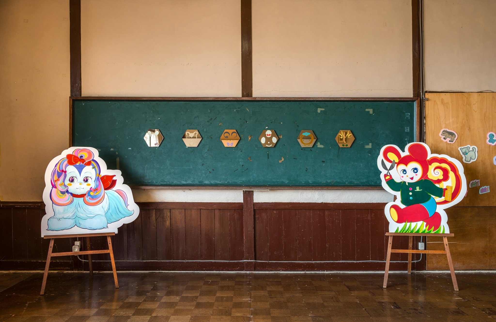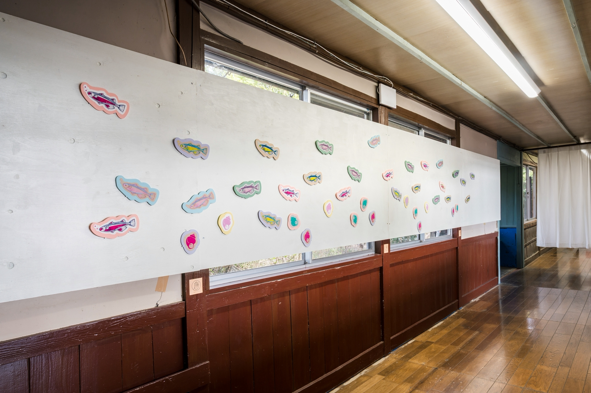 現在林は当館を拠点に制作や来場者との交流を行なっています。今回の展示会場である当館は毛野小学校の分校として建てられた木造校舎を活用しています。卒業生の方々を含む来館者との交流で温かな分校の思い出に触れ、自身は苦手だったという小学校で、学校が苦手な人、もちろん好きな人にも向けて秘密の居場所のような展示になるよう願いが込められて展覧会はつくられます。