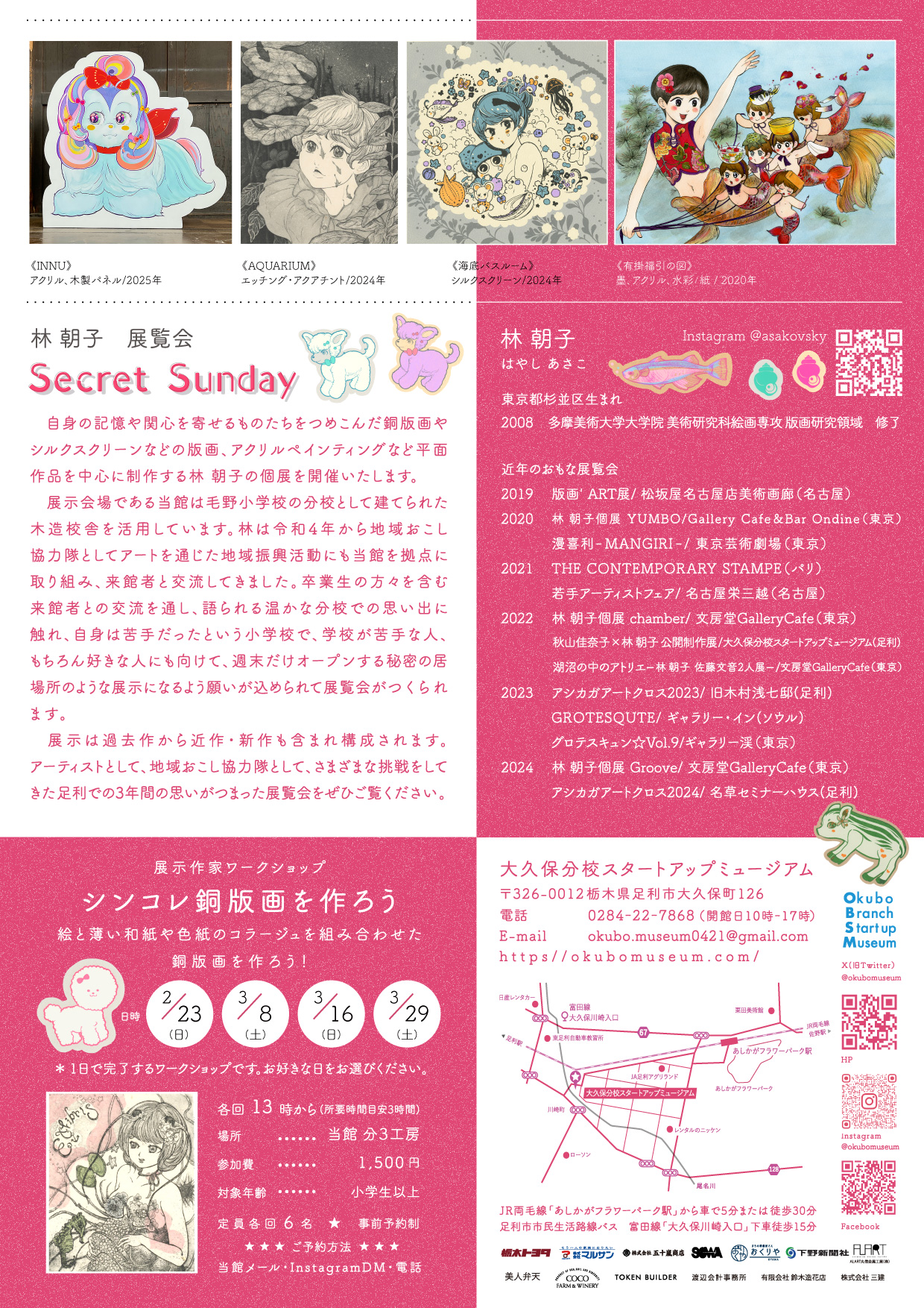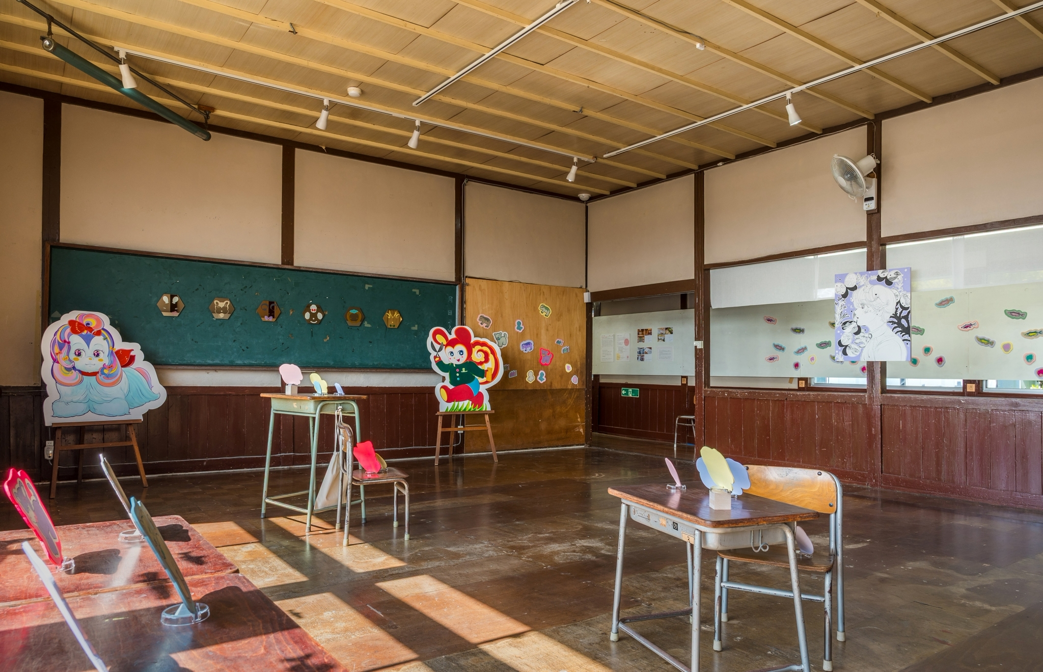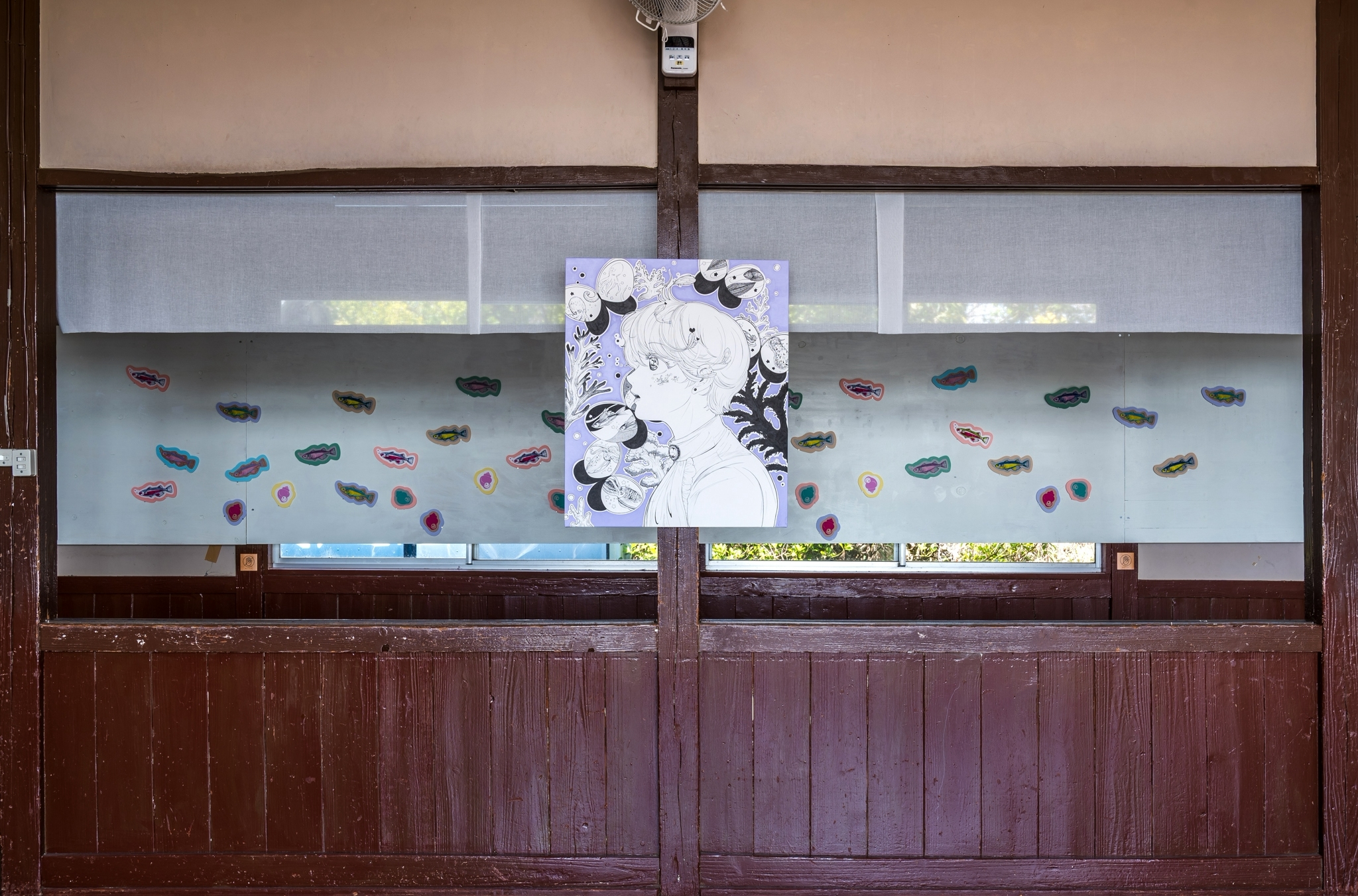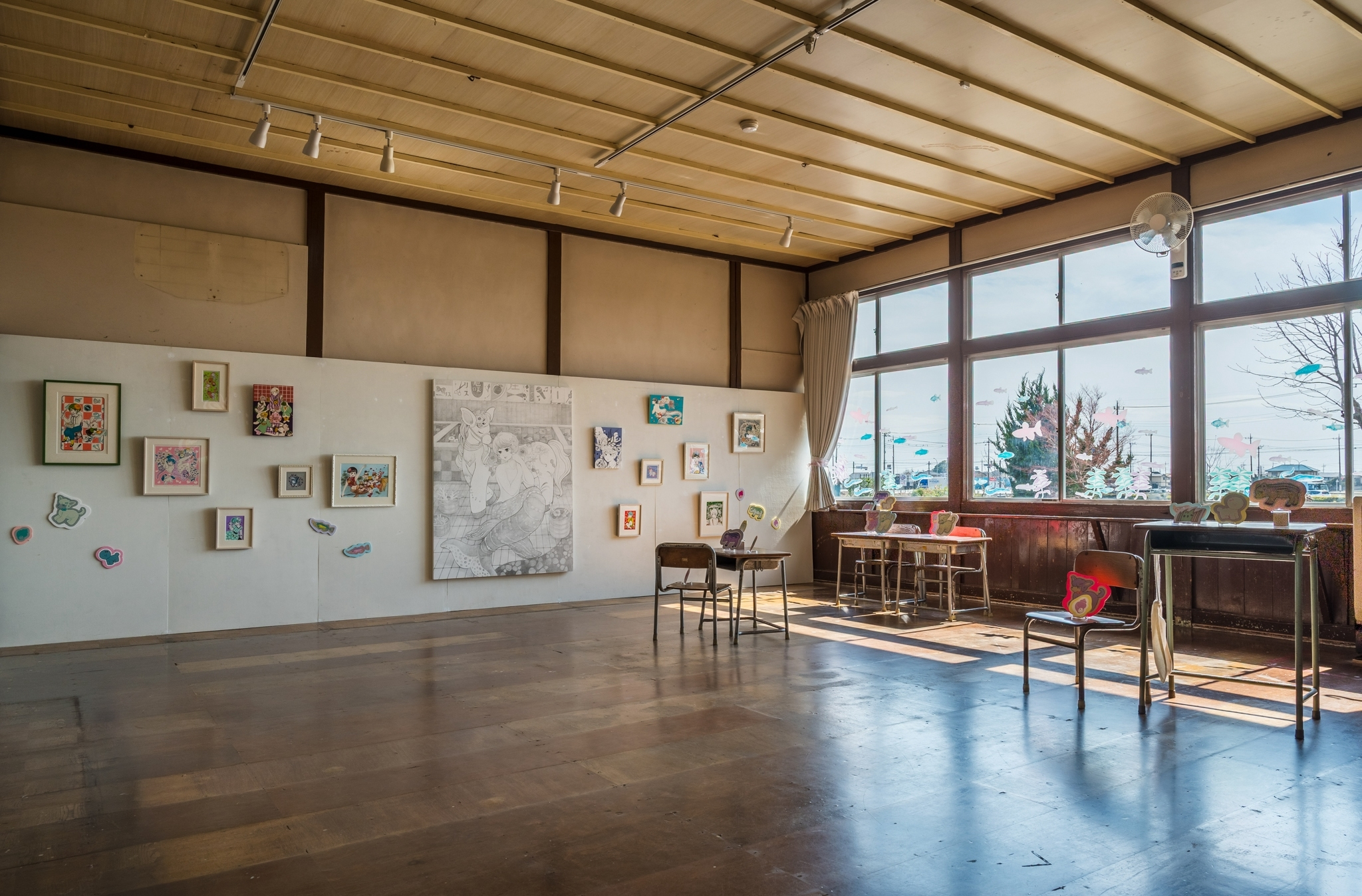 現在林は当館を拠点に制作や来場者との交流を行なっています。今回の展示会場である当館は毛野小学校の分校として建てられた木造校舎を活用しています。卒業生の方々を含む来館者との交流で温かな分校の思い出に触れ、自身は苦手だったという小学校で、学校が苦手な人、もちろん好きな人にも向けて秘密の居場所のような展示になるよう願いが込められて展覧会はつくられます。