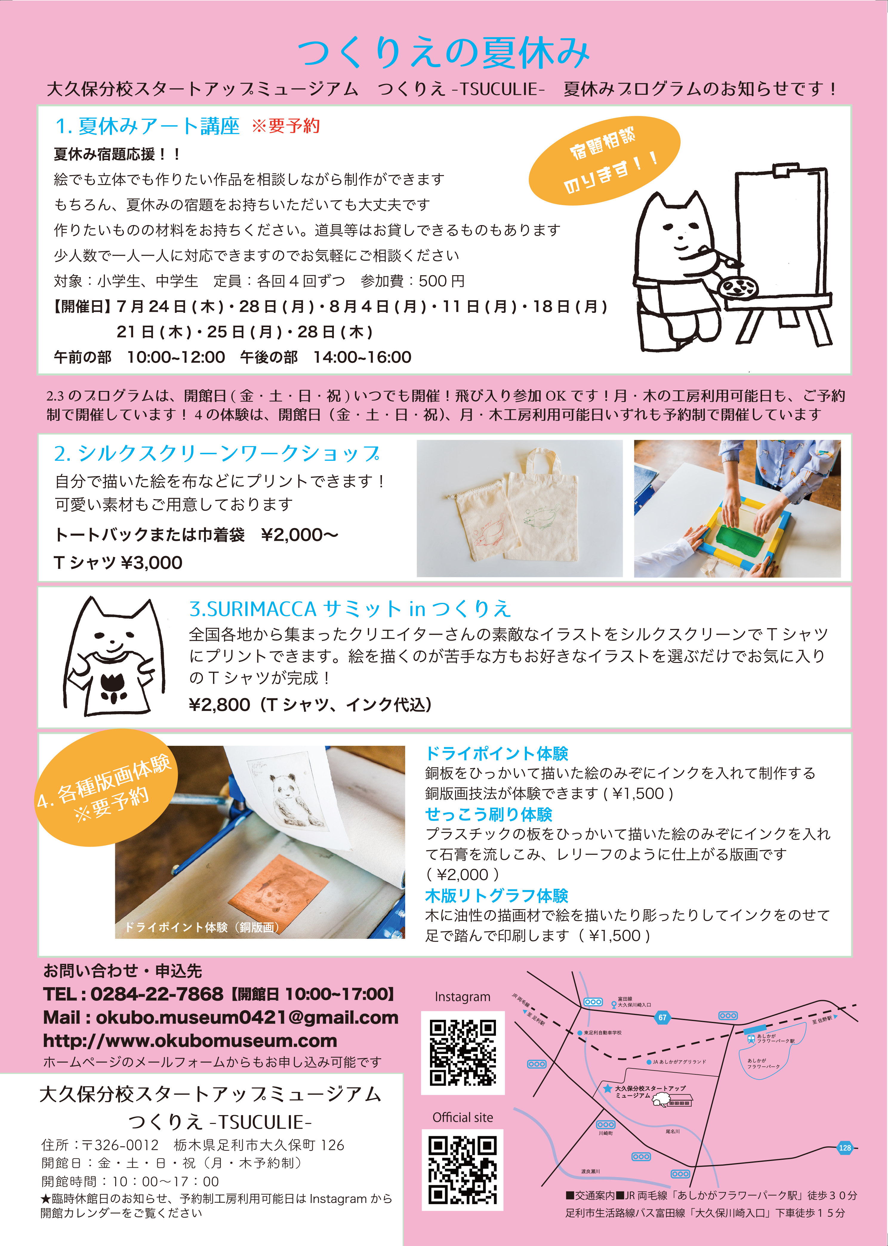 また、夏休み企画も開催しております。ご予約はお電話、メールフォームにてお問い合わせください。